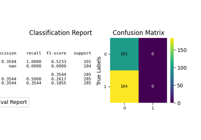 Visualization of the Confusion Matrix [1] alongside a text report showing key classification metrics.
